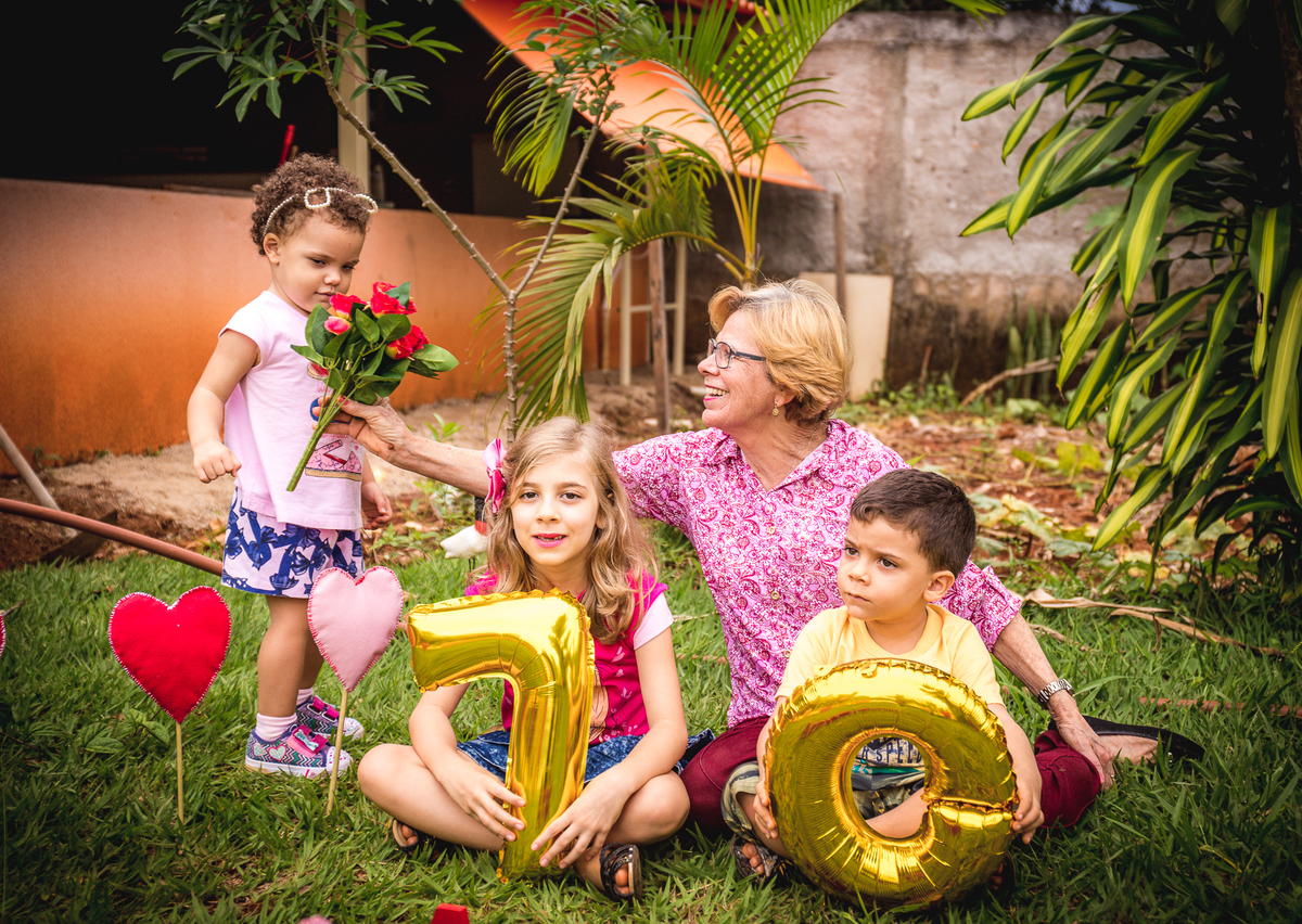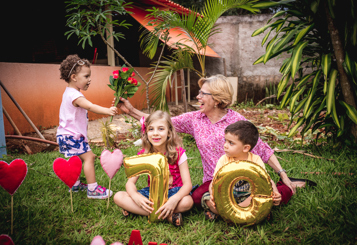 Ao comemorar seus 70 anos de idade, porque não aproveitar e fazer umas belas fotos com a família, revelando como é bom estar em sintonia com ela.